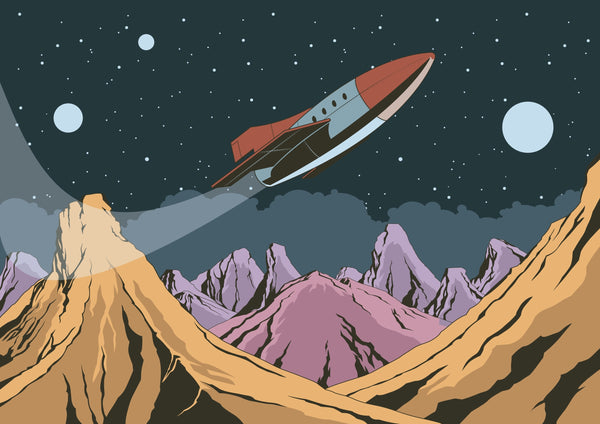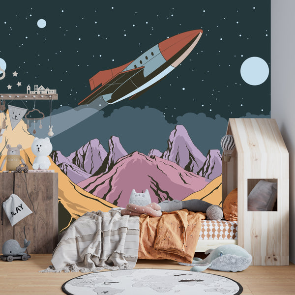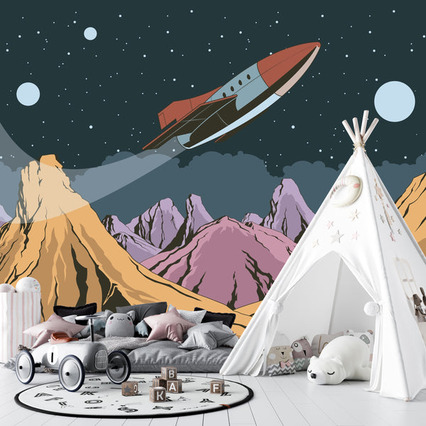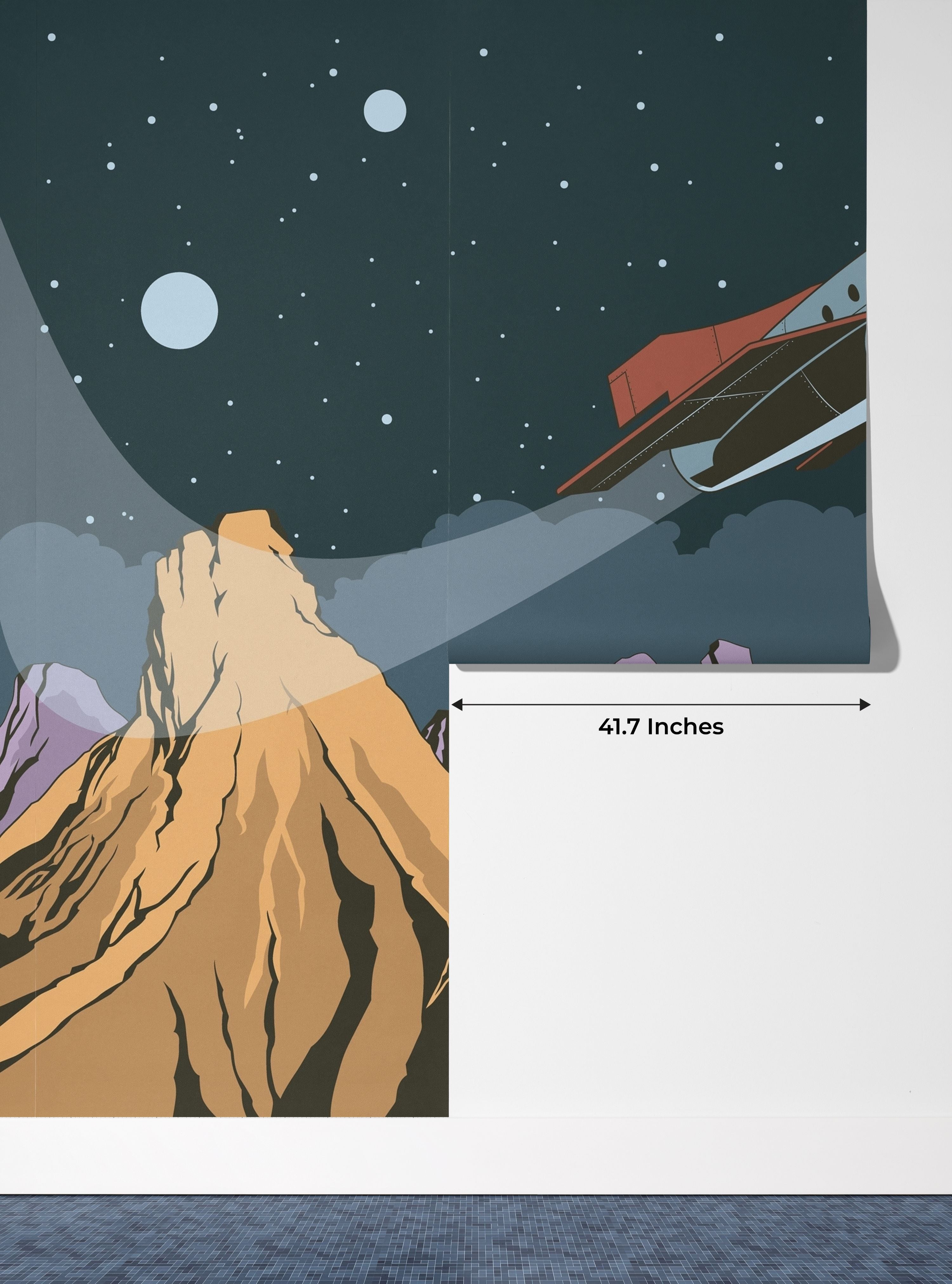 Deep Space Planet Wallpaper, Retro Future Style Mural, Oversized Custom Size Wall Art, Non-Woven, Non-Adhesive, Modern Wall Paper, Removable