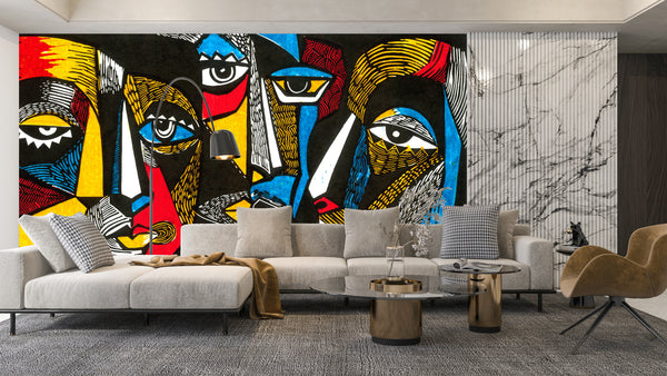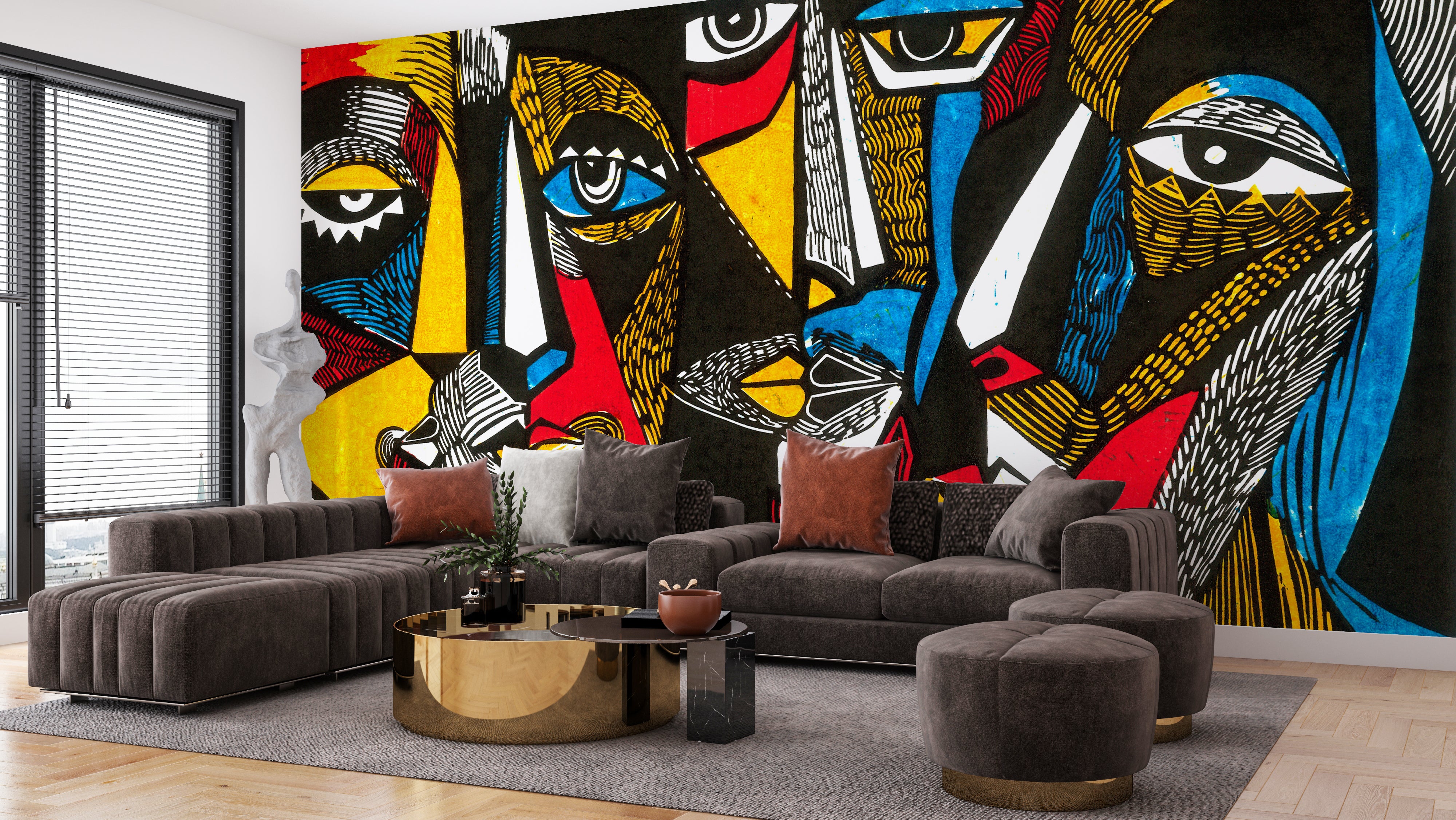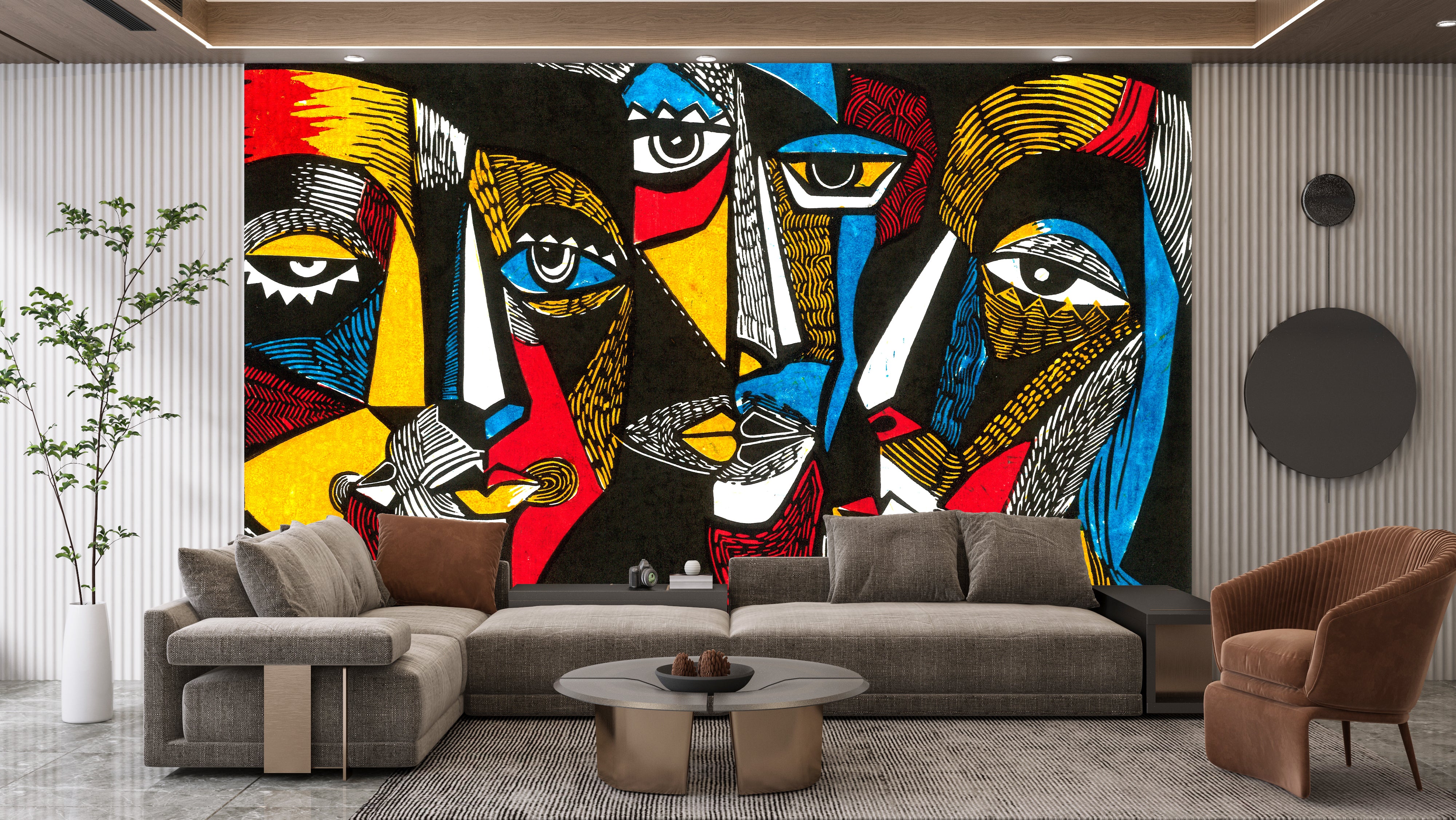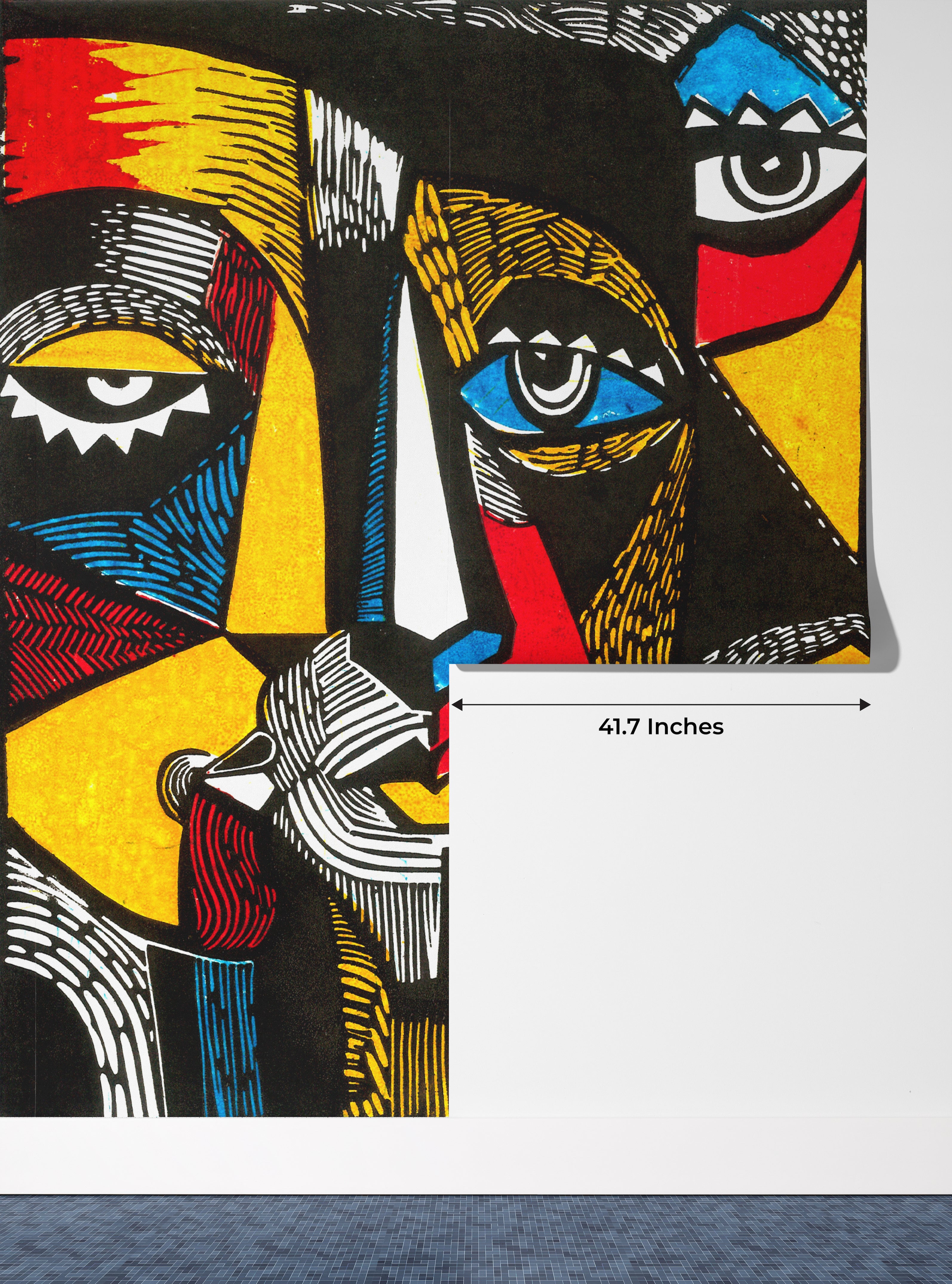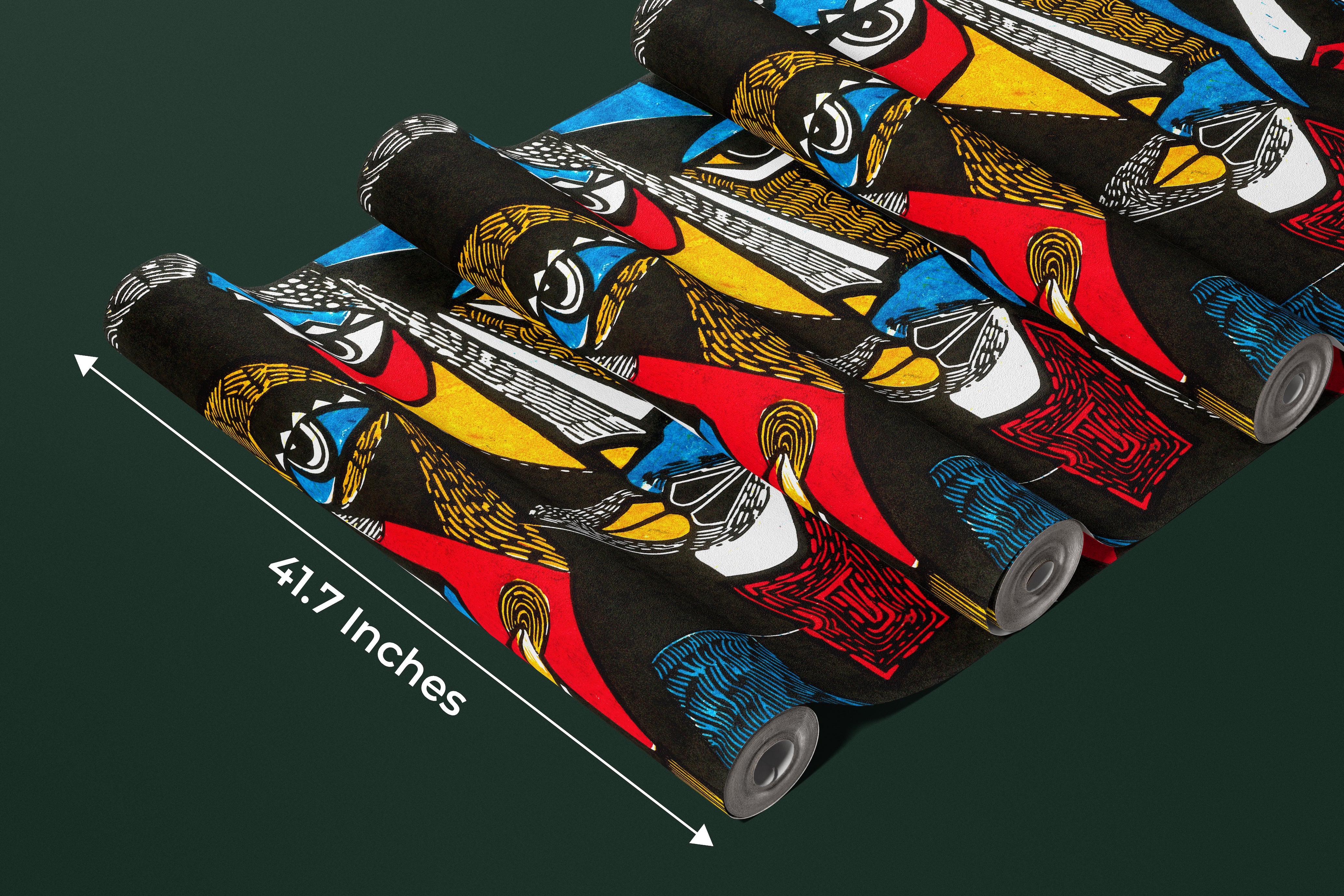 Modern Surreal Wallpaper, Linocut Style Mural, Oversized Custom Size Wall Art, Non-Woven, Non-Adhesive, Modern Wall Paper, Removable
