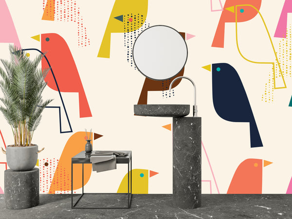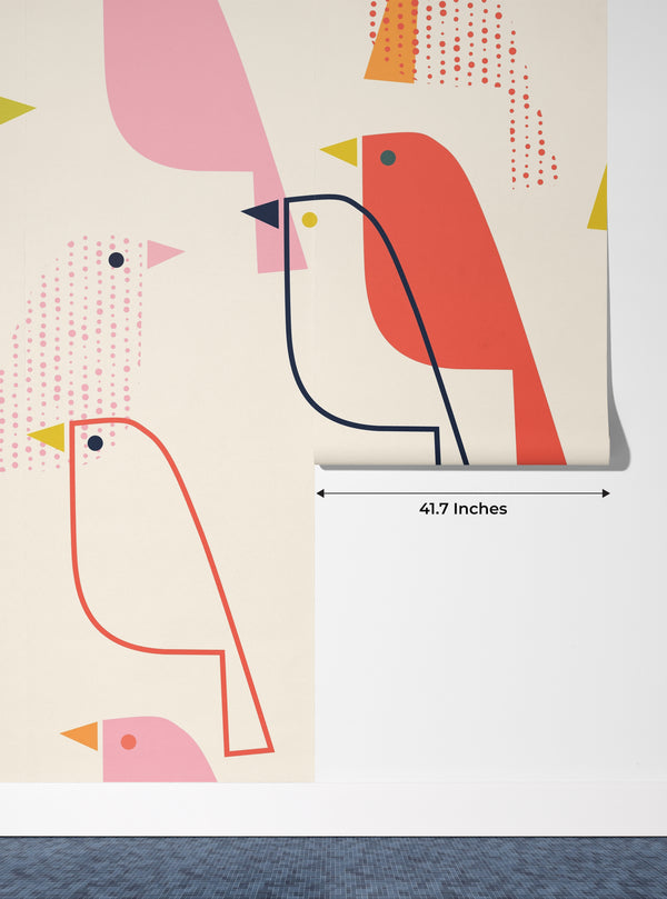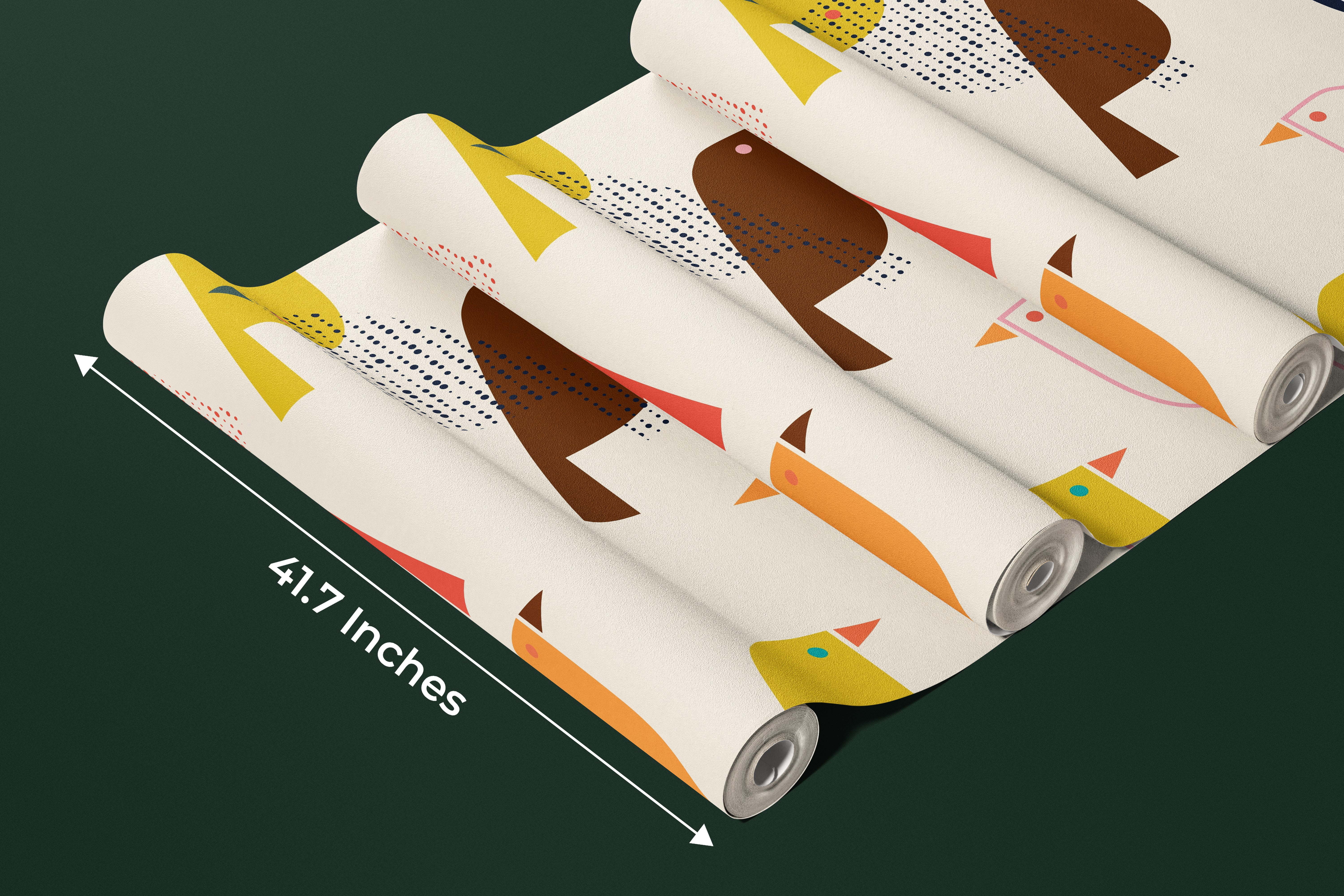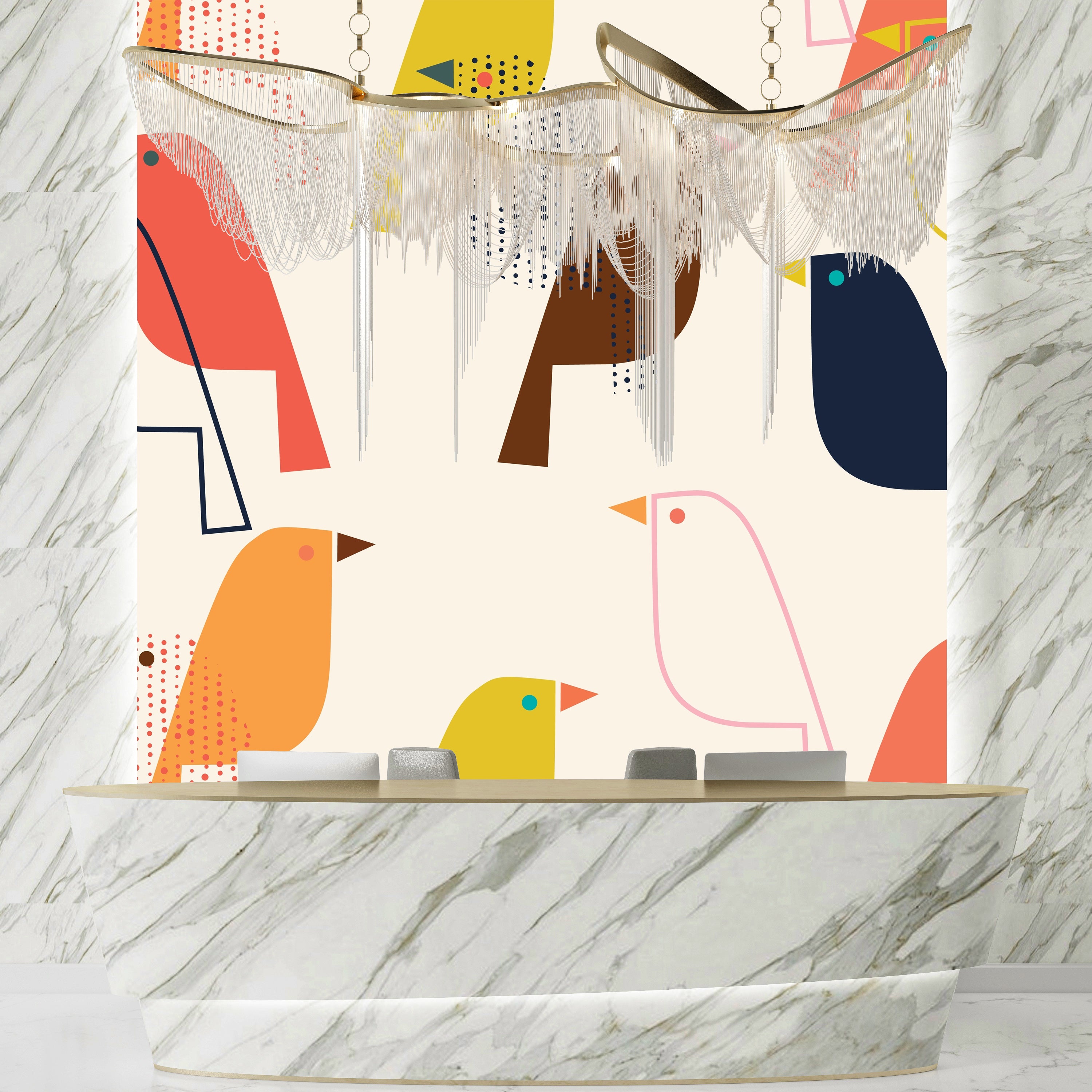Colorful Birds Wallpaper, Seamless Pattern Mural, Oversized Custom Size Wall Art, Non-Woven, Non-Adhesive, Modern Wall Paper, Removable