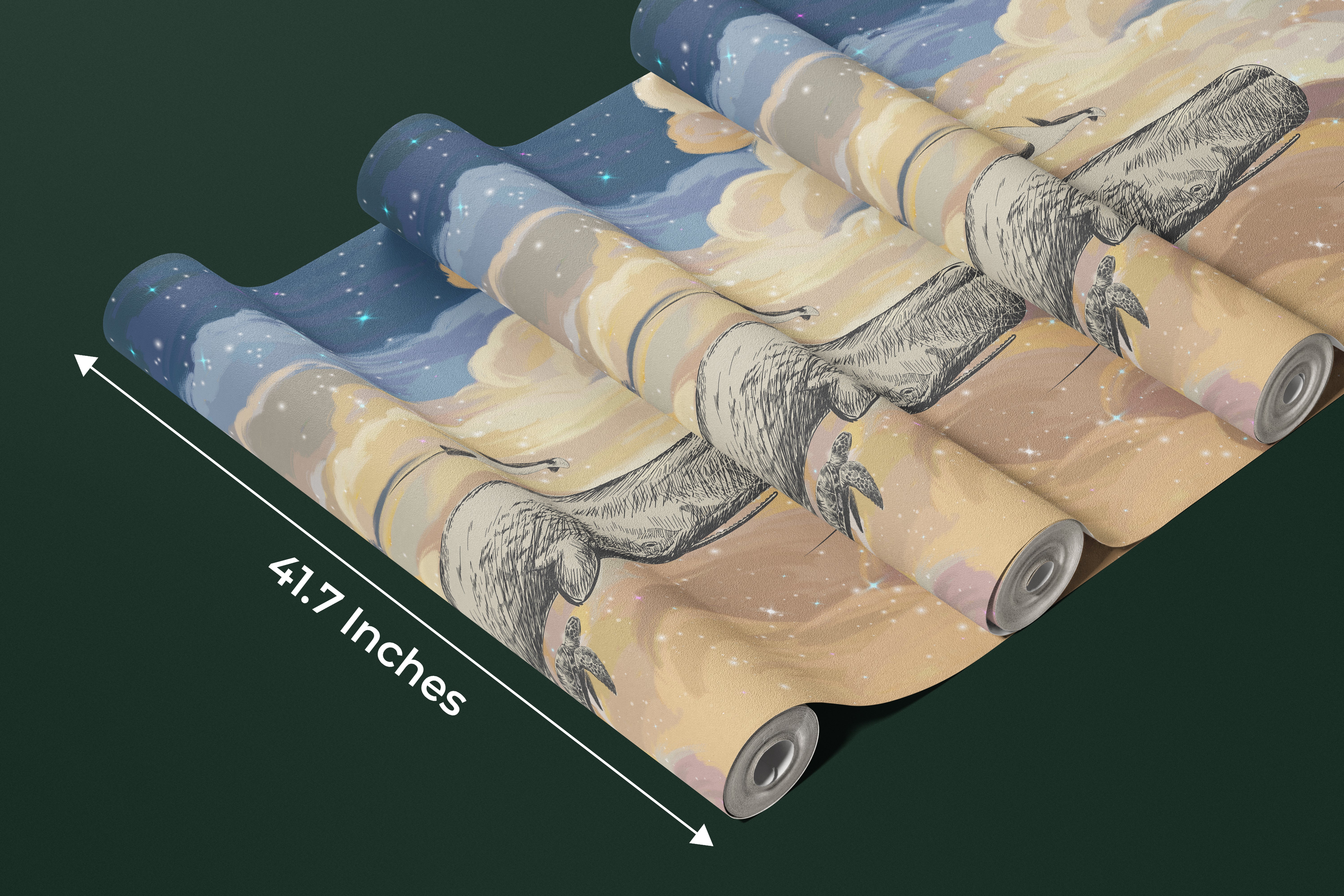 Whale in the Sky Wallpaper, Starry Night Mural, Oversized Custom Size Wall Art, Non-Woven, Non-Adhesive, Modern Wall Paper, Removable