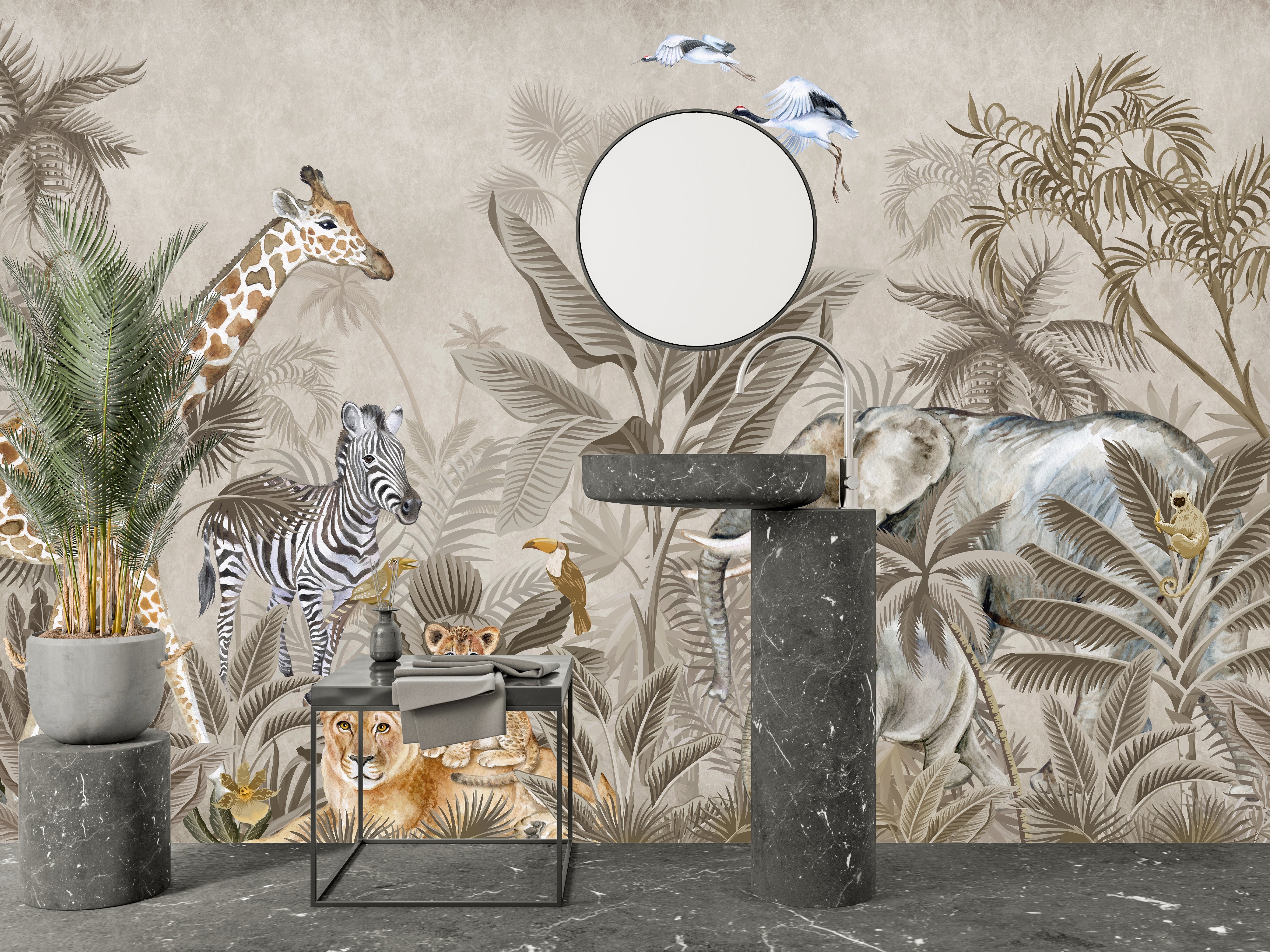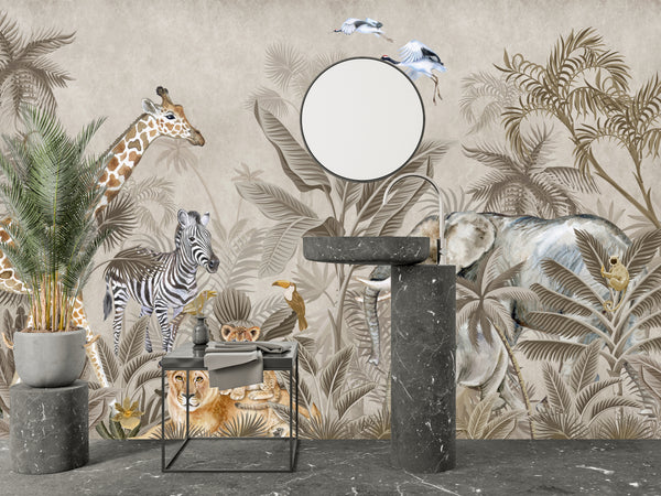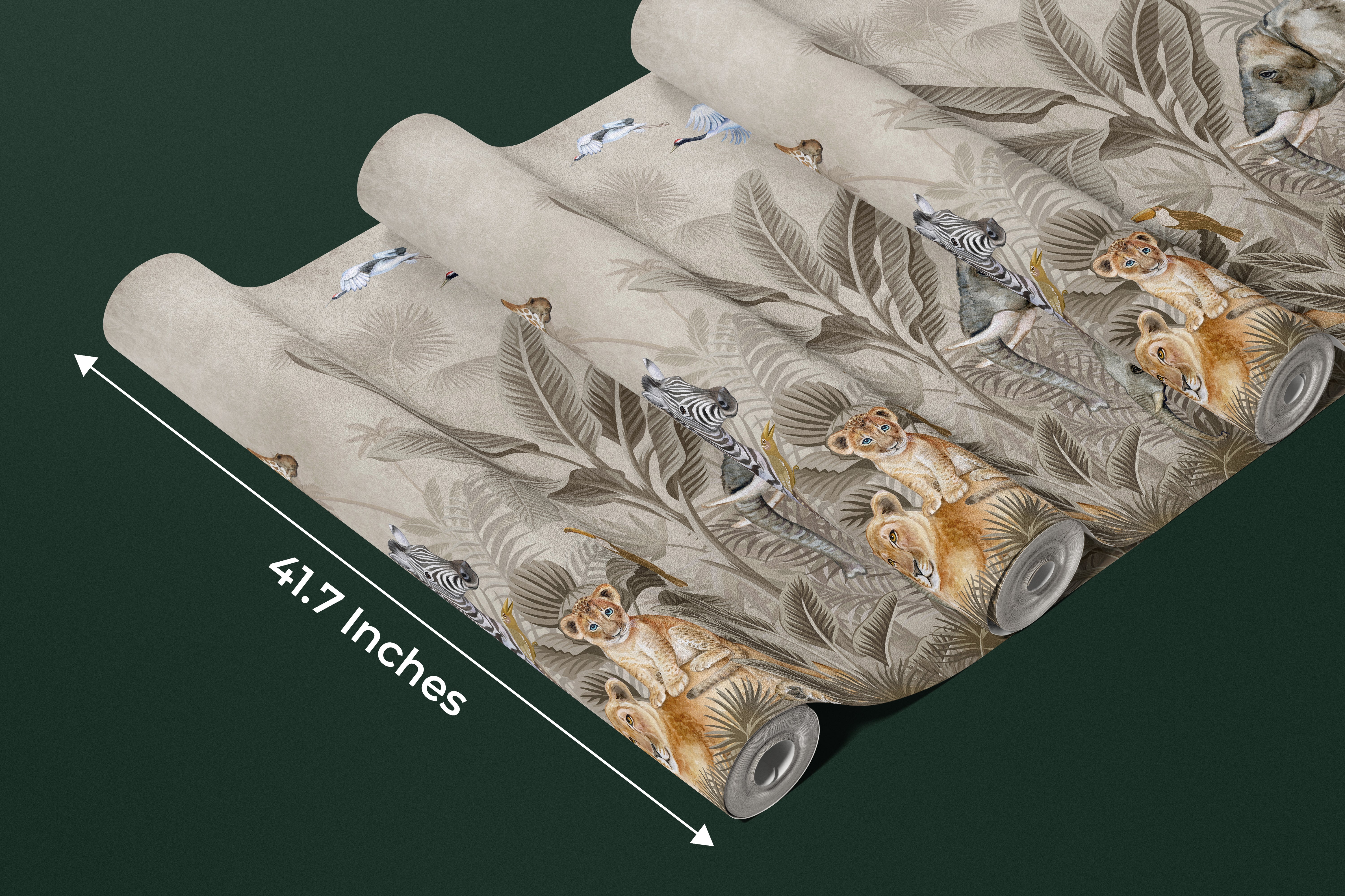 Safari Animals Wallpaper, Watercolor Mural, Oversized Custom Size Wall Art, Non-Woven, Non-Adhesive, Modern Wall Paper, Removable