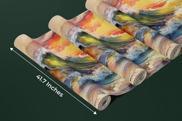 Beautiful Sunset Over Ocean Wallpaper, Oil Painting Mural, Oversized Custom Size Wall Art, Non-Woven, Non-Adhesive, Modern Wall Paper, Removable