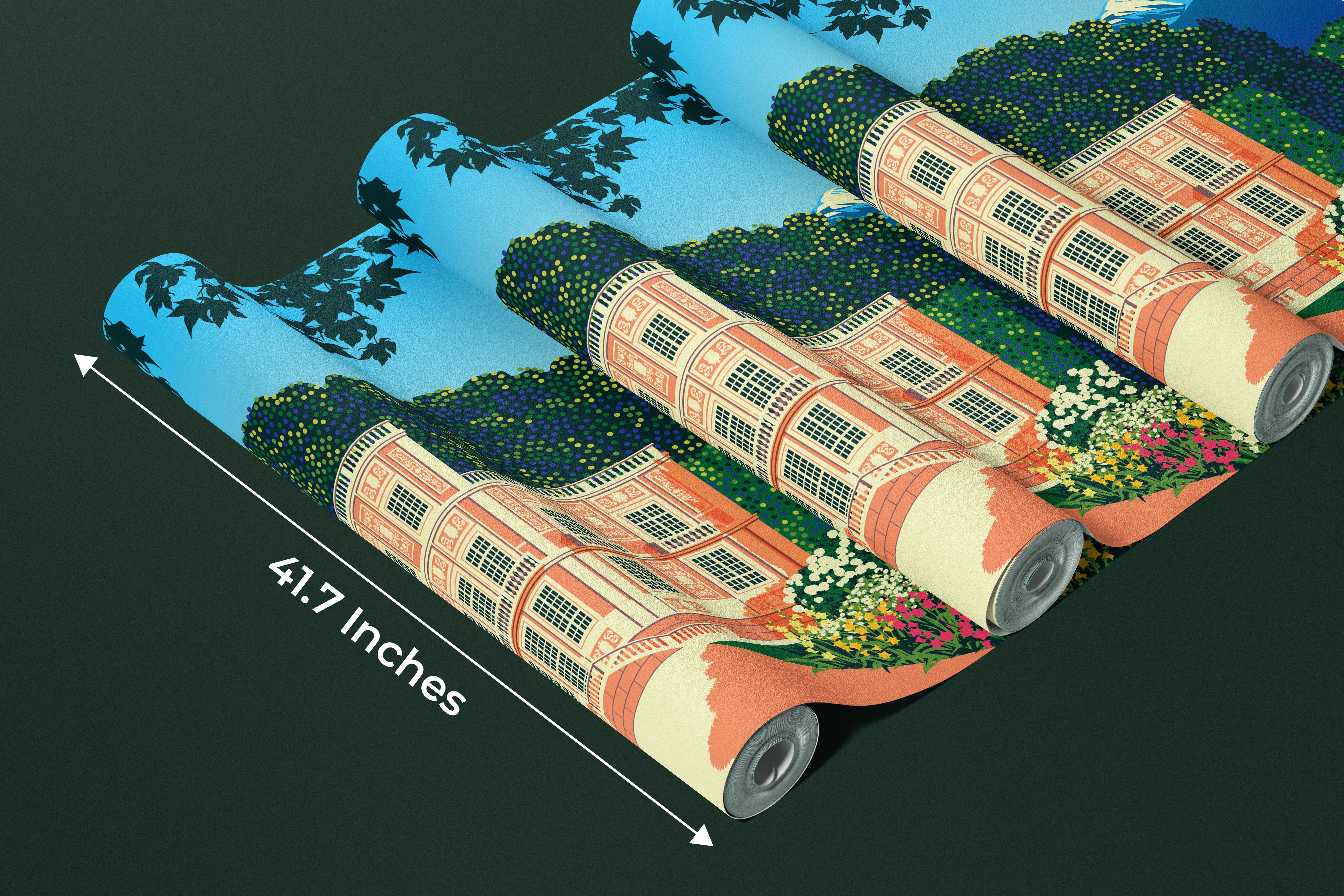 Manor House Wallpaper, Summer Day Mural, Oversized Custom Size Wall Art, Non-Woven, Non-Adhesive, Modern Wall Paper, Removable