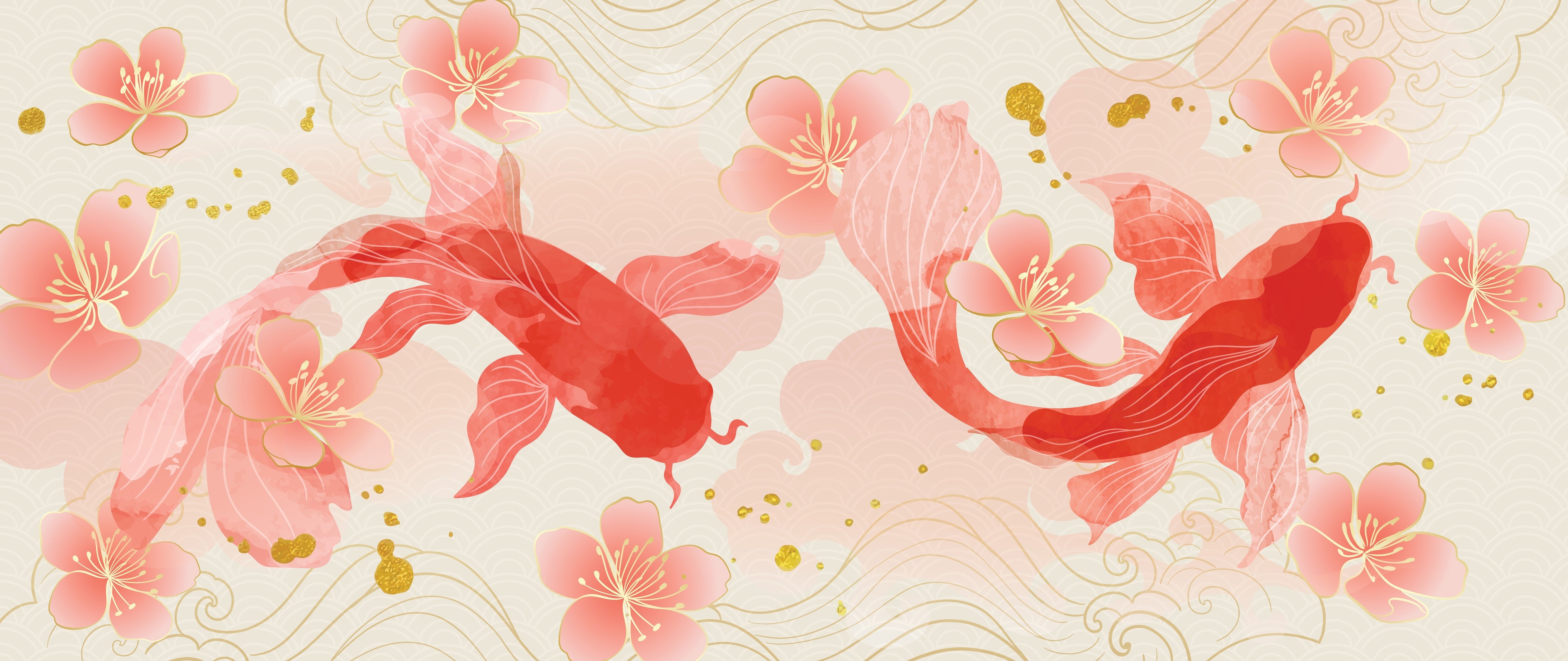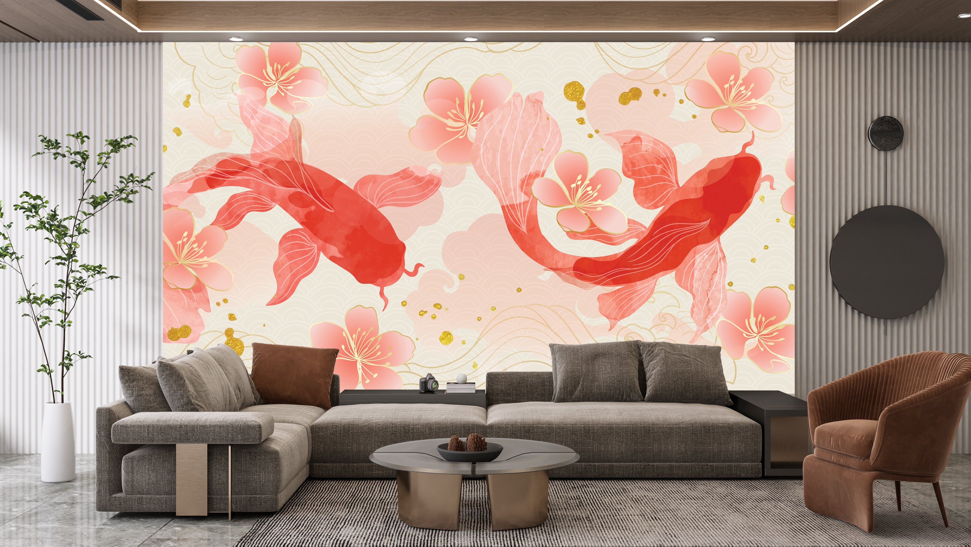 Elegant Koi Fishes Wallpaper, Luxury Chinese Mural, Oversized Custom Size Wall Art, Non-Woven, Non-Adhesive, Modern Wall Paper, Removable