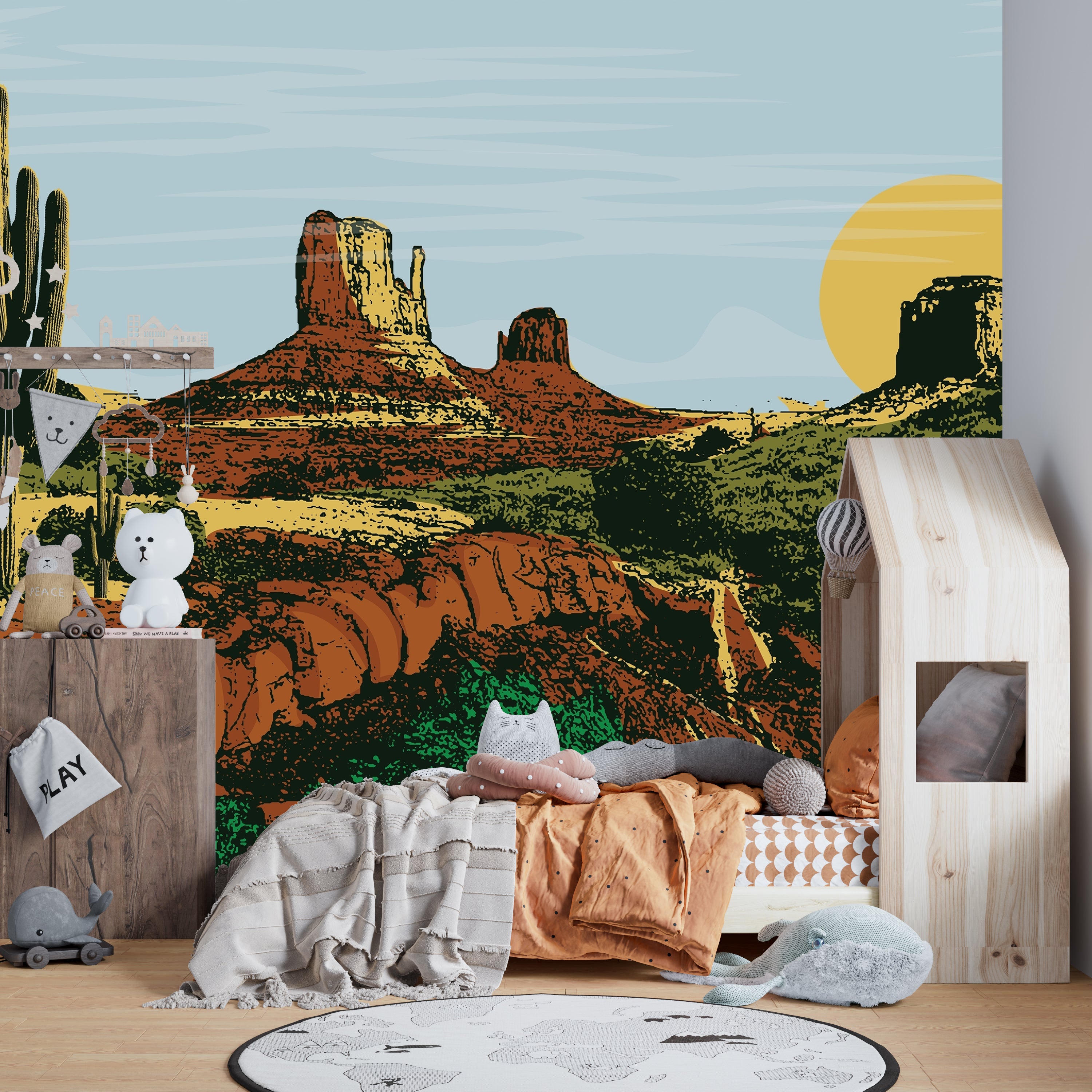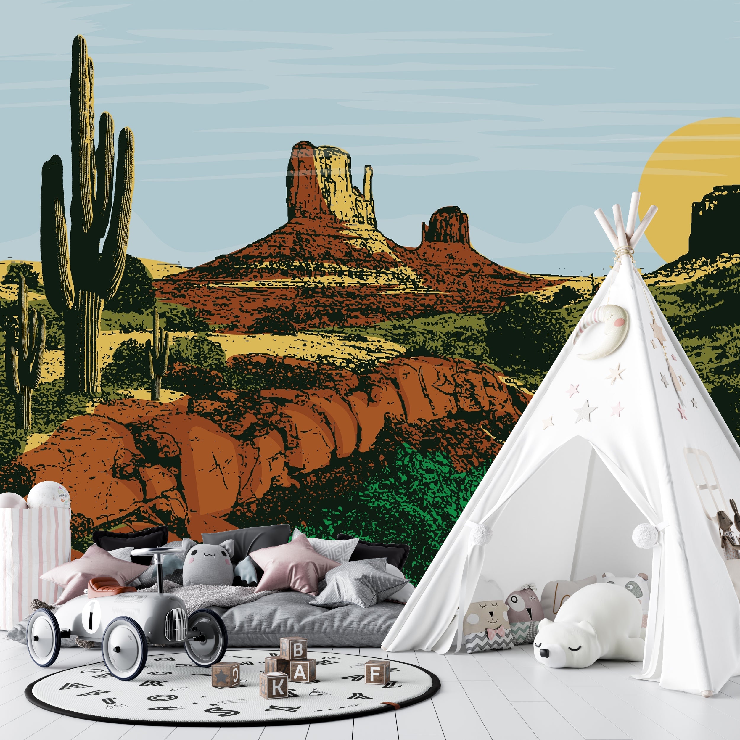 Wild West Wallpaper, Desert Landscape Mural, Oversized Custom Size Wall Art, Non-Woven, Non-Adhesive, Modern Wall Paper, Removable